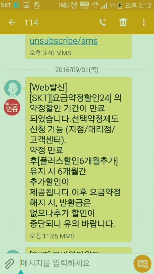 문자는 24개월 약정 끝났으니 요금이 20%할인 가능한 선택약정가입이 가능하다. 는 내용이네요. 안해도 앞으로 6개월간은 요금할인 혜택이 계속되구요. | ||
