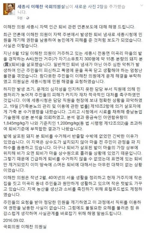 사실관계야 양쪽 입장이 있겠지만, 이해찬의원 주장만을 보면 15톤/300평 계산하면 한평에 50kg이네요.