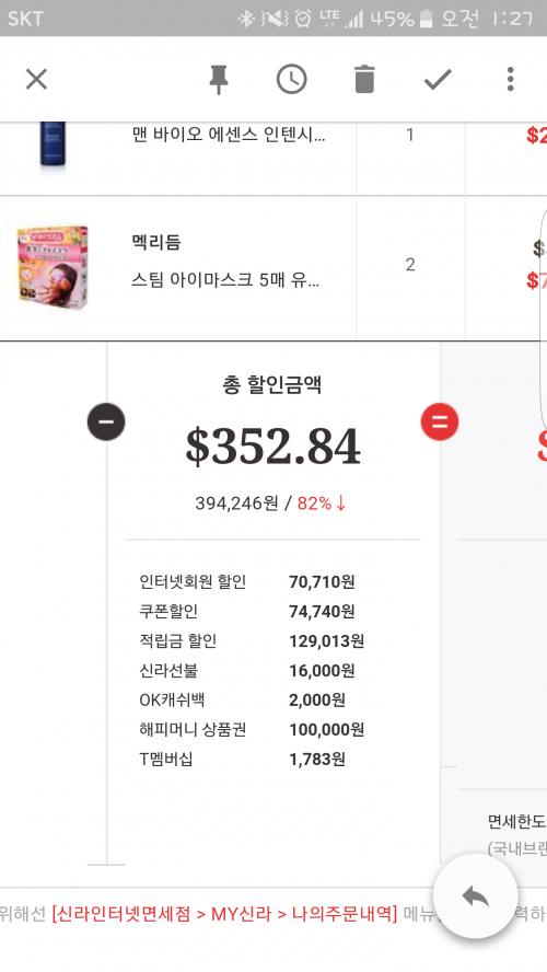 해피머니 ㅎㄷㄷㄷ 저도 이번달에 놀러가서 면세에서 질렀는데 싼거같지않은 싼거같은.....의문이 드네요 | ||