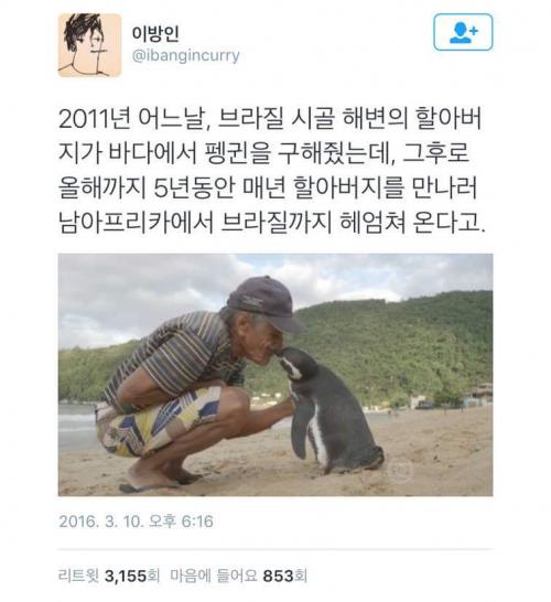 실로 경이롭네요.. 펭귄과 사람의 교감도 가능하군요 | ||