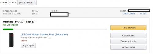 아마존은 배송 준비 단계에서 결제가 됩니다. 따라서 현재는 주문서만 받아 둔 상태이며 결제는 되지 않았습니다.