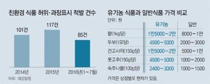 10. 한 가게 건너 ‘유기농-친환경’ 푯말… 믿어도 되나요 → 마크와 생산 농민표시 없으면 가짜. 가격은 유기농이 2배 수준. 올 허위 적발 건수 85건(대검 기준).(동아) ▼표