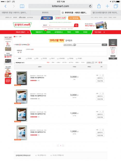 가령 롯데마트에서 파는 크리스탈 액자 같은 건 하나에 1000 원이예요 ㅋㅋㅋ