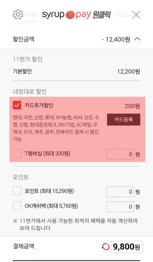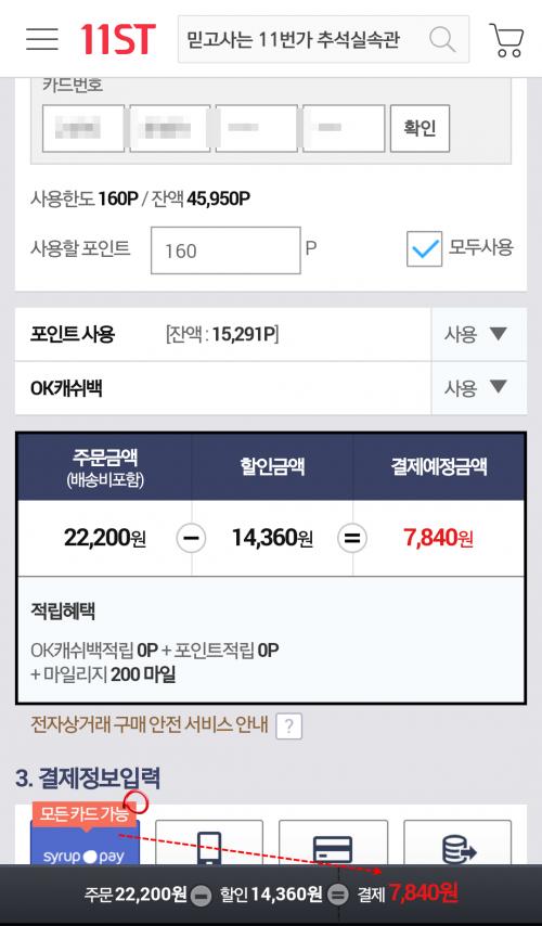 11번가 시럽 페이 원클릭 결제와 수동 결제 가격 차이 - http://www.dealbada.com/bbs/board.php?bo_table=comm_free&wr_id=730012