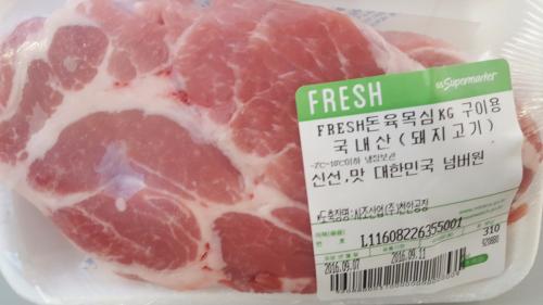 흠. 몇일전 홈플세일할때 목살 100g당 980원인가에 사다 먹었죠 =ㅁ= 비게가 좀 있지만 싸더라고요.