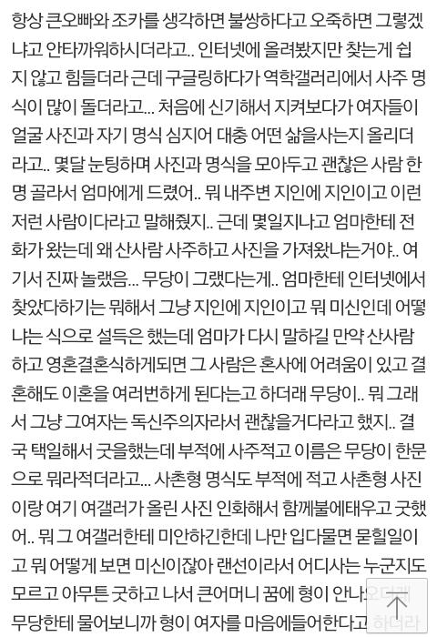 무당이 구글링했을거임 ;;; 죽은 사람 구하기가 절대 쉽지 않을테니?? 구글링해서 못 찾으면 그런말 안하고 해주고 ...=_= | ||