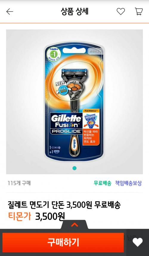 상품: 질레트 퓨전 프로글라이드 면도기