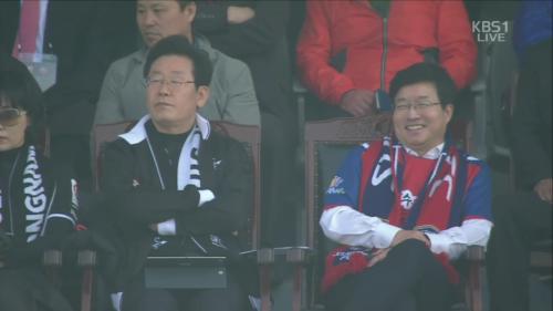 축구 관전중인 이재명시장,염태영시장 > 자유게시판