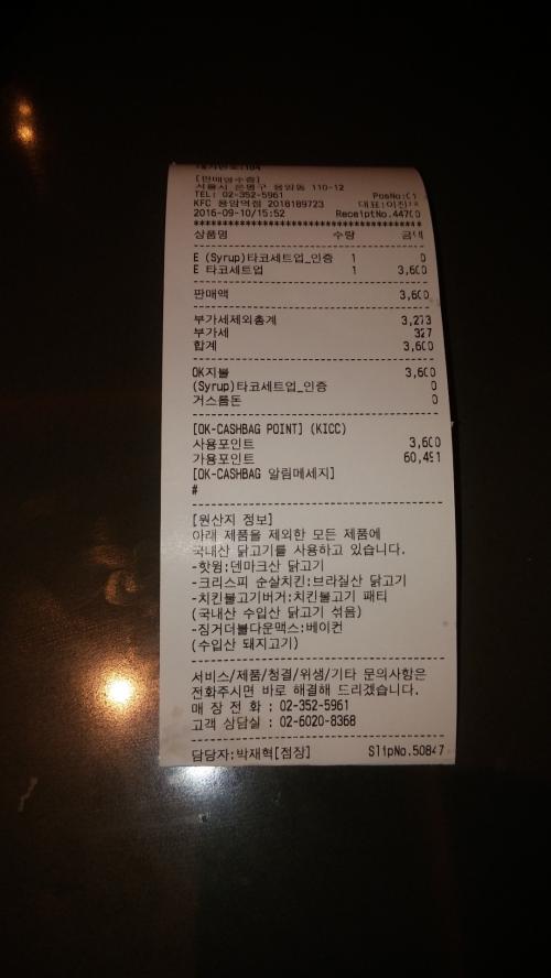 미리줌 어디에 쓸까 했는데 영수증 에그타르트에 징거타코 세트로 처리하면 훌륭하겠네요 | ||