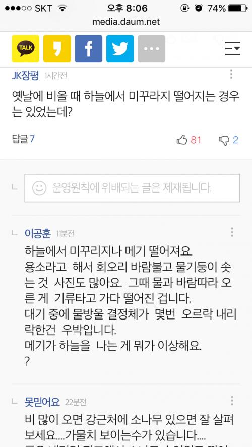 미꾸라지가 하늘에서 떨어지는데 대수롭지 않은건가요? ㅎㅎㅎㅎㅎ