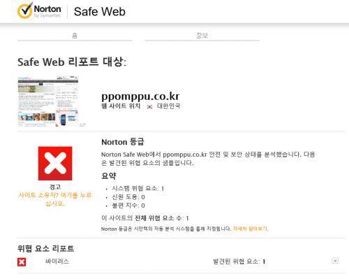 노턴 시큐리티로 어지간한 대형 웹사이트는 사이트 경고가 잘 안 뜨는데,