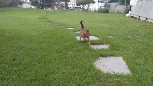 마당에서 잔디는 안 밟고 포석만 밟고 다니는 게 넘 웃겨서 사진 올려요! ㅋㅋㅋㅋ