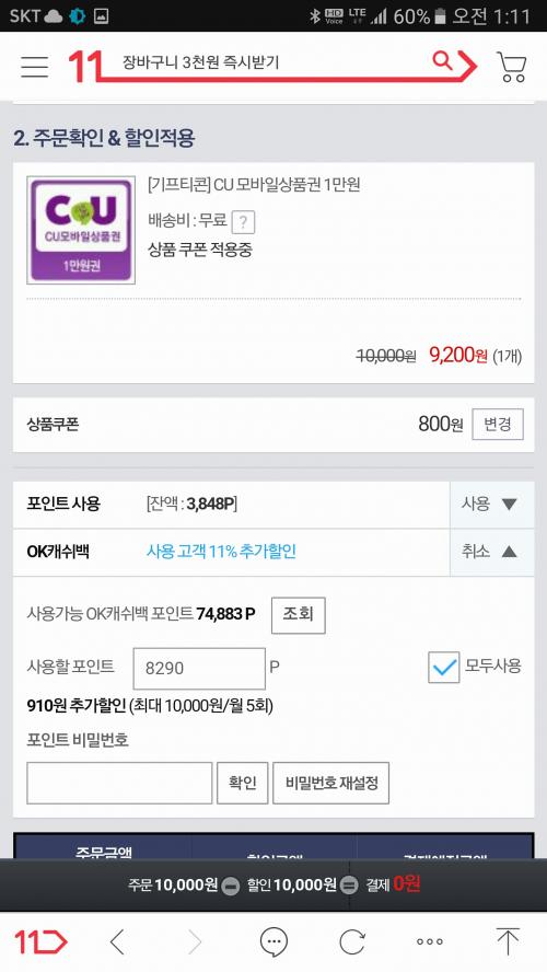 Okb 어차피 현금이나 마찬가진데 okb으로 결제시 추가11%가 가능하니 현금보다야 좀더 좋죠