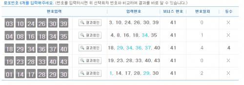 ...는 번호 4개로 4등 당첨 ㅋ_ㅋ
