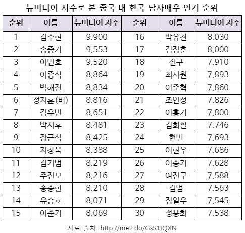 김수현 송중기~예상했네요 박시후가 상위권이라니 의외네요 | ||