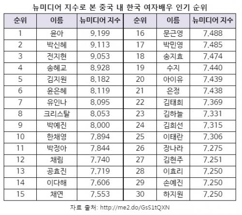 여자배우 11위 박정아는.. 쥬얼리 박정아가 맞는거죠?ㅎㅎ