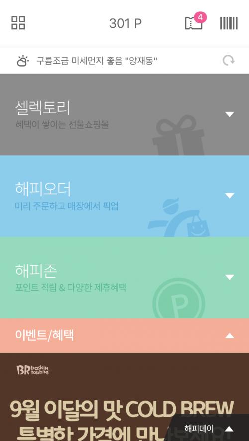 해피포인트 앱에서 쿠폰 두개 받아지고 카톡에서 배라 친추하면 쿠폰이 또와요~!! 총3개 받을 수 있어요~ | ||