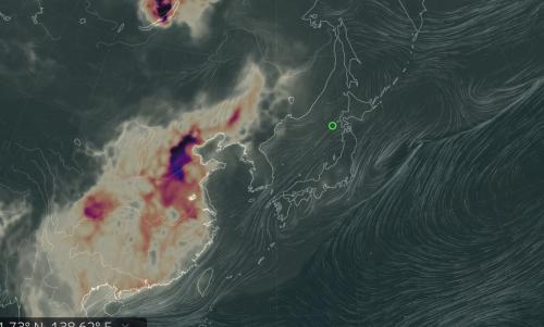https://earth.nullschool.net/#current/chem/surface/level/overlay=cosc/orthographic=-230.19,32.39,455/loc=138.619,41.731