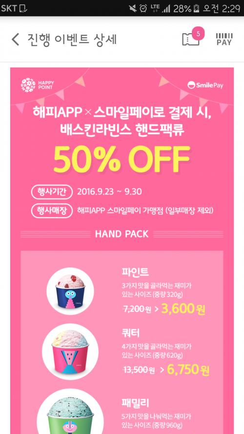 spc랑 스마일페이 런칭해서 배스킨 50프로네요
