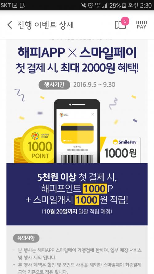 해피포인트앱네 스마트페이 첫결재도 2천원페이백 적용되나요? 아니면 스마트페이 완전 처음 사용해야만 하는건가요? | ||