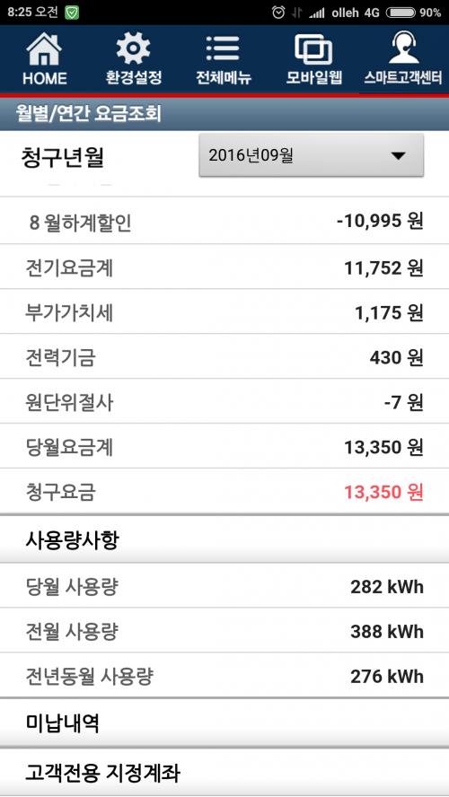 8월16일부터 사용분이고 전달 할인을 이번달에 받아서 금액이 확 줄었네요 | ||