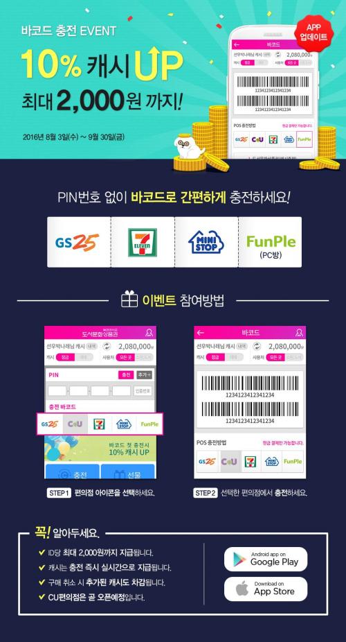 바로 집앞 편의점 가서 아이디 2개로 4만원어치 충전하고 4천원 추가 적립 받았네요 ㅎㅎ