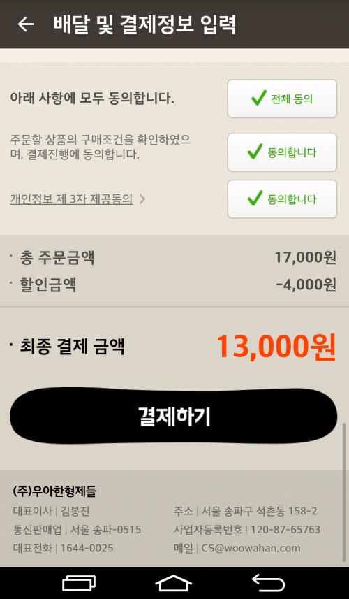 두번째꺼 누르면 첫번째 화면 나오는데 15000원 이상이어야 6천원 할인 적용됩니다.
