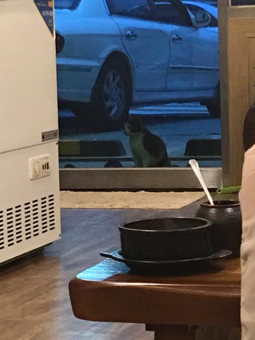 전에도 저 음식점에서 봤었는데 음식점 주변을 탐문하고 다니느가 봅니다.