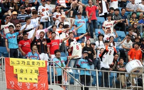 6. ‘느그가 프로가’(너희가 프로인가) → 뿔난 롯데 팬이 25일 창원 마산구장 롯데-NC 전에 내건 플래카드. 이날도 패배, 롯데 올 對 NC 전적 1승 13패.(중앙)
