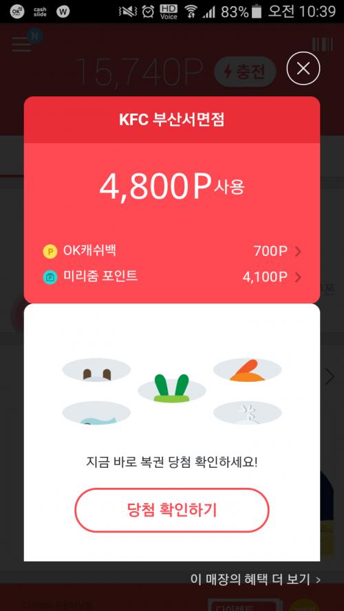 전체 캐시백 포인트를 천점 이상만 보유하고 있으면 돼요~ | ||