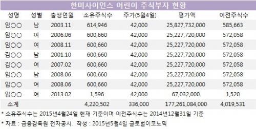 여기 회장님 손자들 2015년 기준 어린이 주식 부자 1위...