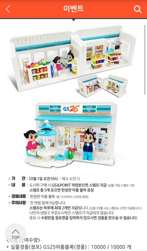 아톰보다 편의점 컨셉 레고라서 수량 금방떨어질듯? 조건도 gs치고 간단하고 | ||