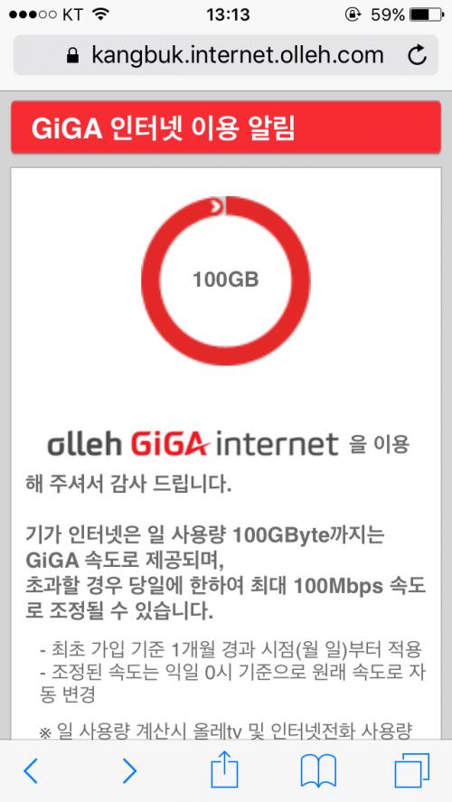 100기가 초과하면 100메가로 속도 조정된답니다.
