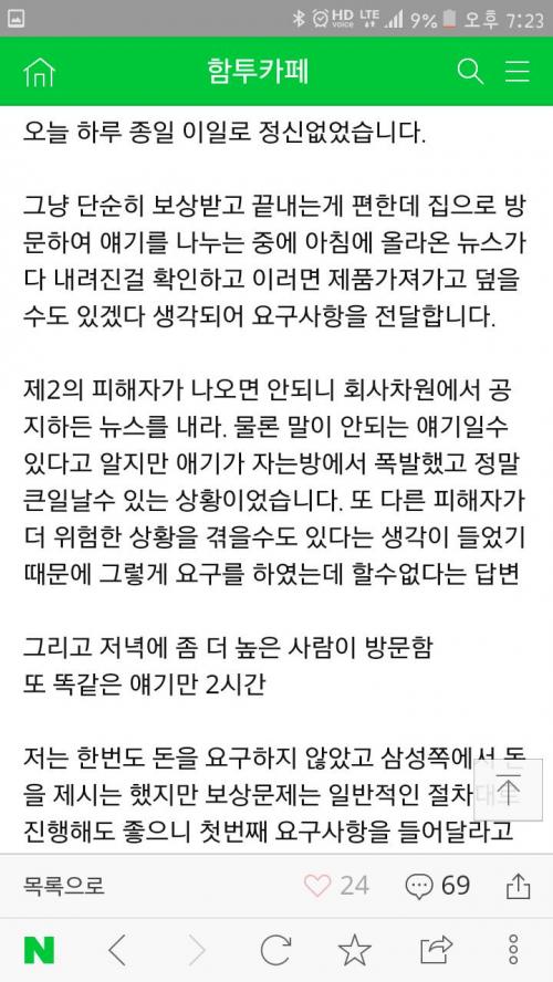 하지만 삼성은 언플로 "고액의 보상금 요구" 라고 내보내고