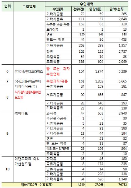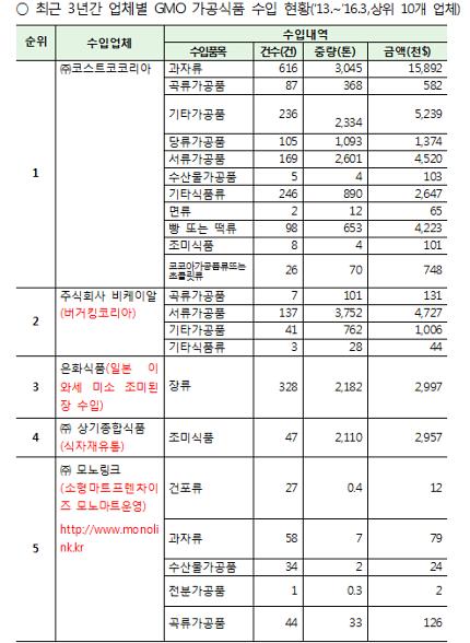 유전자변형 가공식품 많이 수입한 업체 1위는..