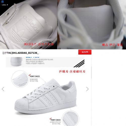 신발 발등부분을 설표라 하는데 음각로고가 아닌겁니다. 수입품은 다른가 해서 아이다스 공홈에 전화해서 물어봤는데 자신들의 제품은 음각로고만 출시되고 병행수입품이 많아서 자신들이 가품여부를 판단해줄수 없다라고 하더군요 공홈에서도 타사가 위조품을 팔던말던 관심이 없는 것 같더군요