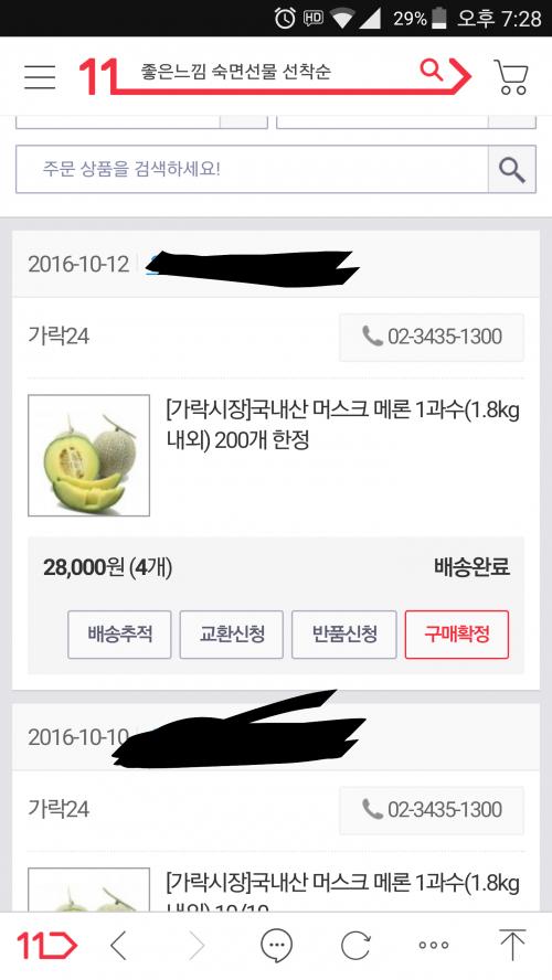 그런데 저번에 2개 시켰을때는 오늘 온거보다 훨씬 크고 후숙도 돼있는 메론이었는데
