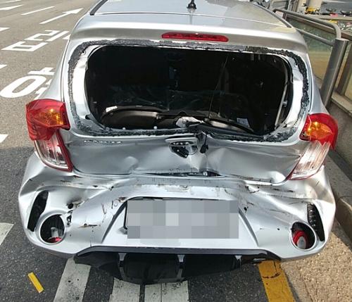 5톤이 뒤에서 박았는데 사람이 크게 안다쳐서 천만다행입니다 ㄷㄷ | ||