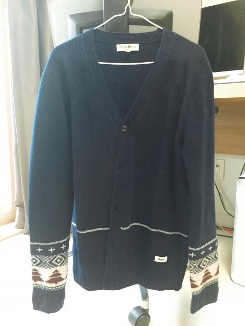 보통 남자 가디건은 통짜거나, 아랫부분이 약간 항아리처럼 볼록? 한 편인데 저건 굉장히 슬림하게 라인이 잘 빠졌더라구요.