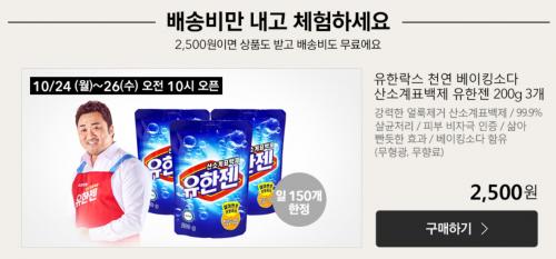 [10시오픈] 산소계표백제 유한젠 200g x 3개 (2,500원/무료) 선착순 150명 ~10/26 ← 배송비만 없는수준..