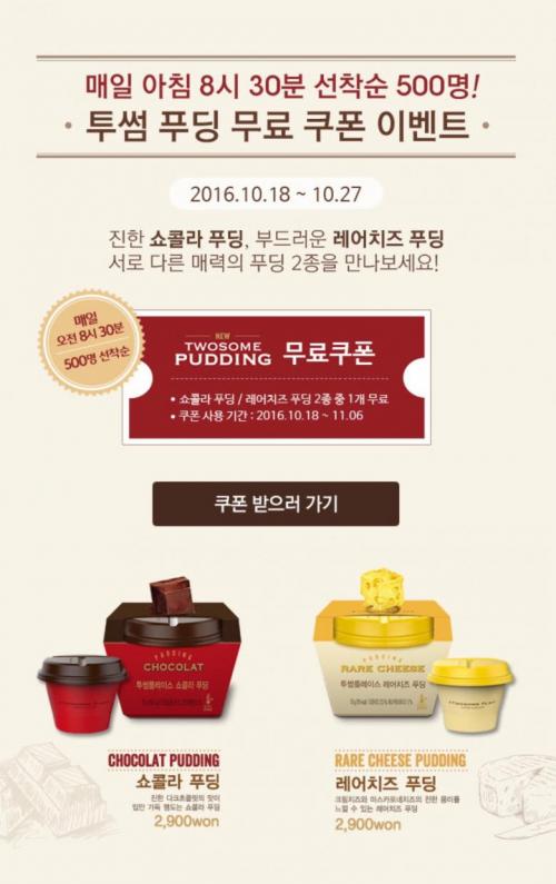 [8시 30분] 투썸 푸딩 무료 쿠폰 선착순 500명 ~11/06