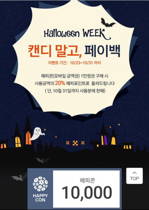 구매 후 이달 31일까지 사용하면 20%를 해피포인트로 재적립해주는 이벤트입니다... 11월 9일에 일괄 적립해준다네요...