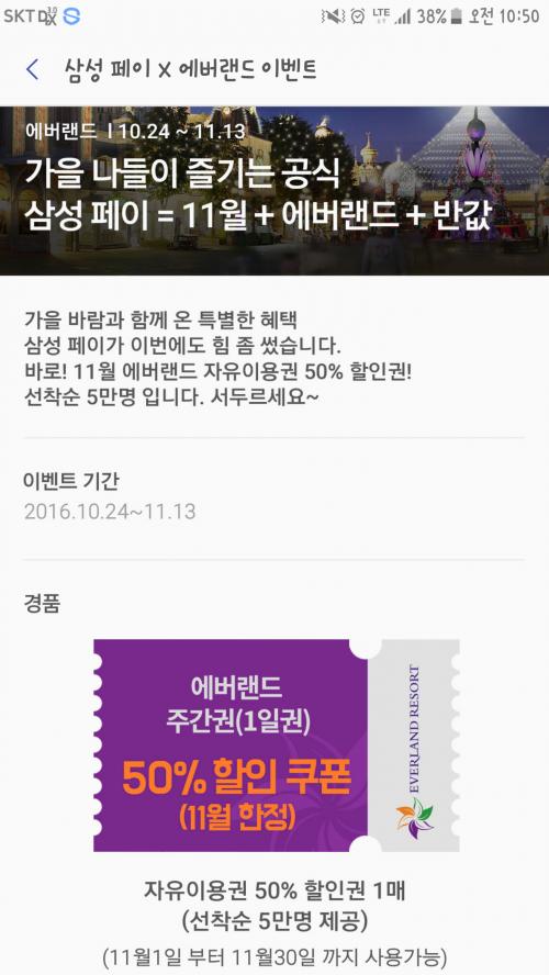 삼성페이 유저님들 에버랜드 자유이용권 반값 쿠폰 받으세여 > 자유게시판