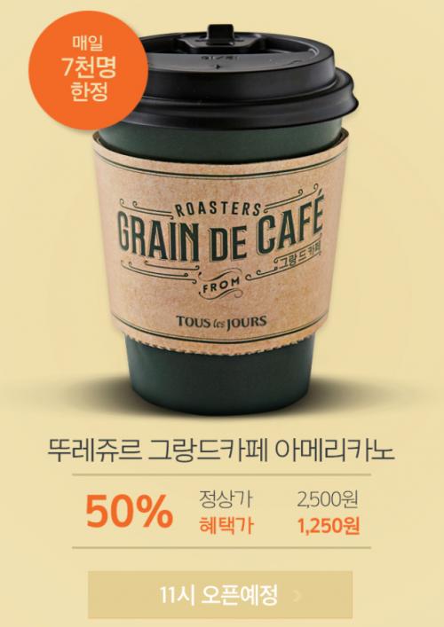 [11시오픈] 뚜레쥬르 그랑드 카페 아메리카노 (2,500원/무료) 선착순 7000명 ~10/28