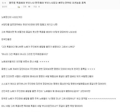 저거 보고 자기도 한국인이면서 조선놈들 까는건 자기무덤파는거라고 뭐라고 하는 애들 꼭 있음 ㅋㅋㅋ | ||