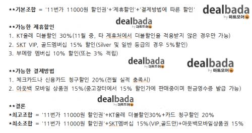 어제 11번가에서 아웃백 11000원 할인권을 1100원에 판매했고 이를 이용한 할인 방법에 대한 나열입니다.