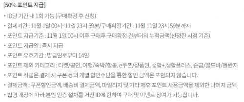 1인1회 신청이라 11월에 작은 금액 구매하고 상품권 딜로 도전하려 했던 사람은 특히 주의해야겠네요. | ||