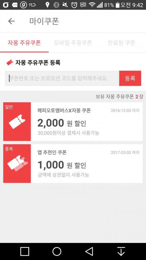 일반쿠폰 2천원짜리는 HAM2016 등록하면 나옵니다. | ||