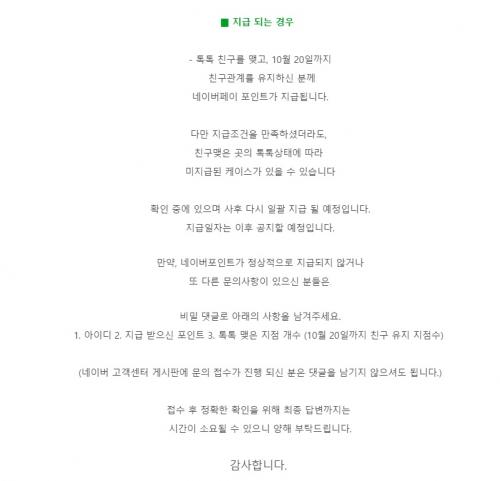 네 애매모호해서리 역시나 문의글남겨야 주는듯 모르고 지나치신분들만 못받으시는거죠 ㅠ.ㅠ | ||