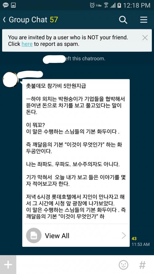 한참 어른(극보수)이신거 같아서 가만히 있는데 계속 카톡 보내셔서, 허위사실 유포하지 말라고 하고 나왔습니다